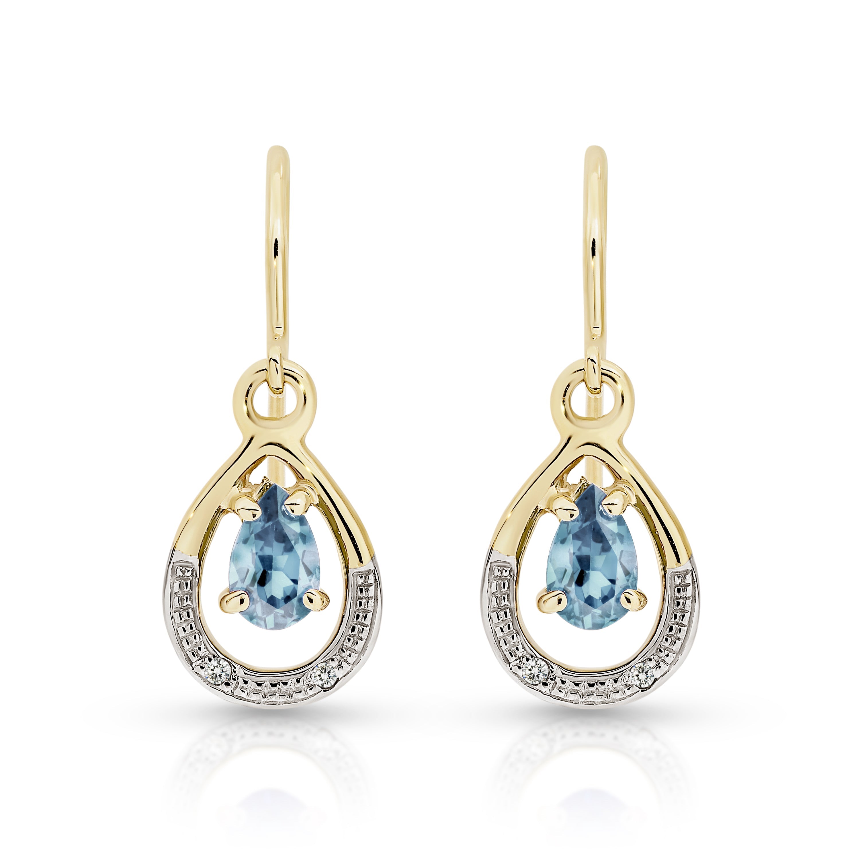 9ct gold pear shape blue topaz and diamond shepherd hook drop earrings