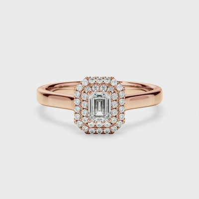 Magnolia 18k Rose Gold Emerald Cut Double Halo LAB Grown Bloom Diamond Ring