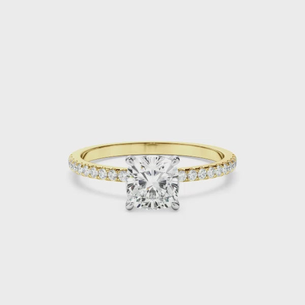 Cushion Cut Diamond Solitaire Engagement Ring With Pave Band