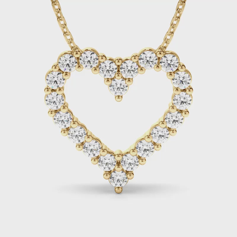 This dazzling diamond heart-shaped pendant features a total diamond weight of 2.10ct round brilliant diamonds and includes a 45cm 18ct gold chain. Exuding fluidity in its line work, and boasting an elegant silhouette, as with all the pieces in our Bespoke Collection, this piece is made especially for you.