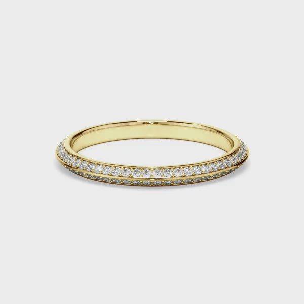 This stunning custom-made wedding ring features two rows of round brilliant cut diamonds set along an 18ct gold or platinum knife edge band. Exuding fluidity in its line work, and boasting an elegant silhouette, as with all the pieces in our Bespoke Collection, this piece is made especially for you.