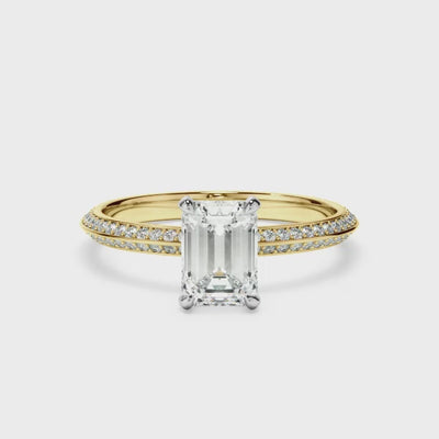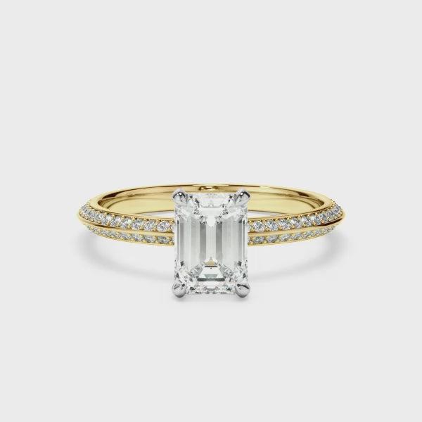 Emerald Cut Diamond Knife Edge Engagement Ring With Diamond Pave Sides