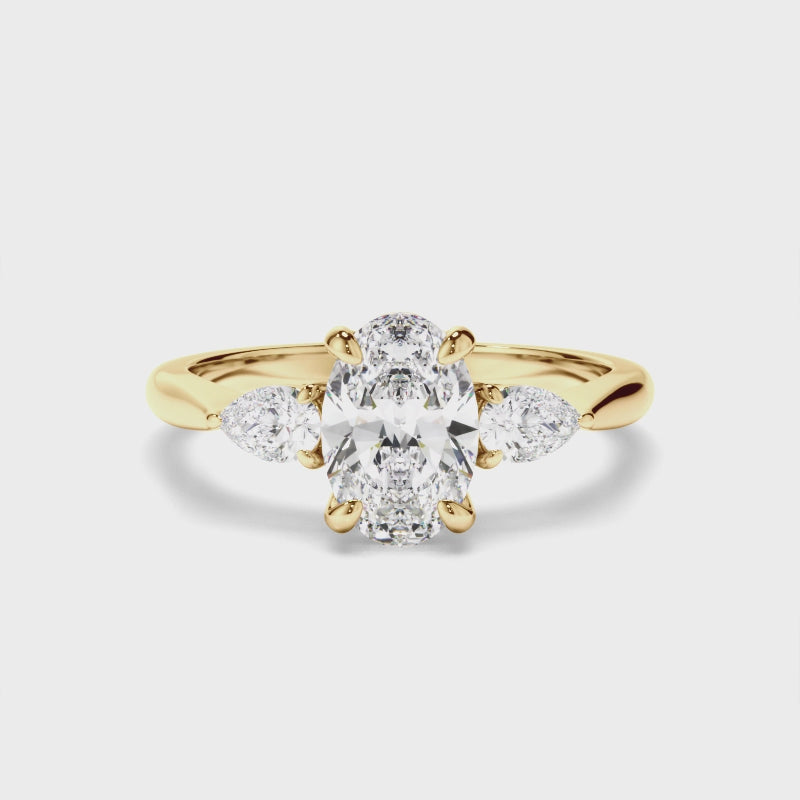 Oval Cut Diamond Trilogy Engagement Ring with Pear Sides