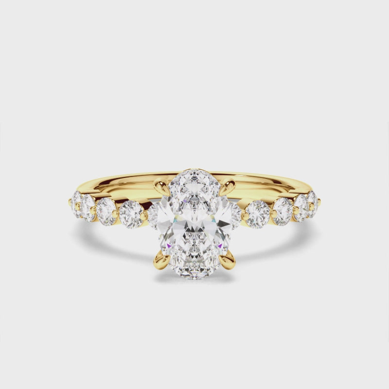 Oval Cut Diamond Engagement Ring with Diamond Sides