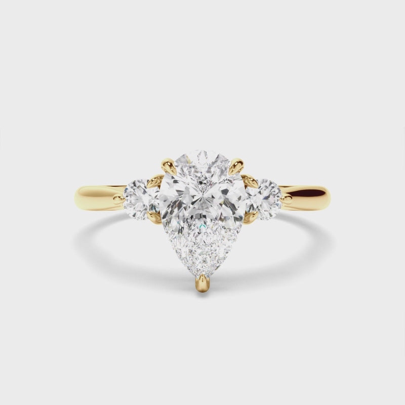 Pear Cut Diamond Trilogy Engagement Ring with Round Brilliant Sides