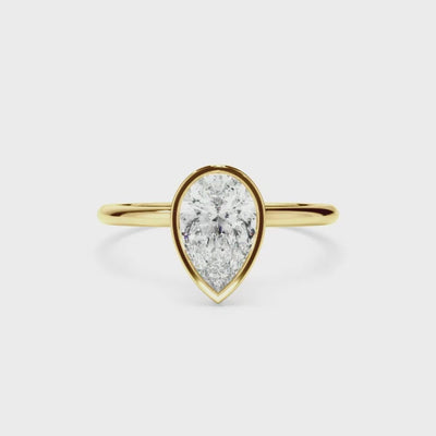 Pear Cut Diamond Solitaire Bezel Set Engagement Ring