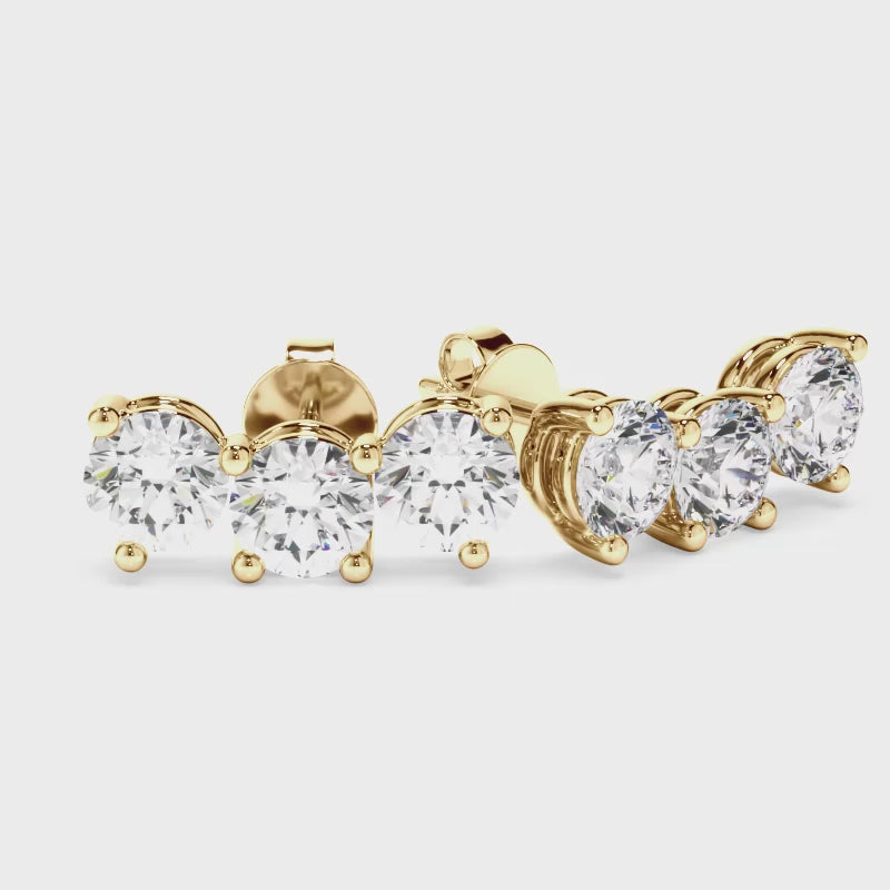 Round Brilliant Cut 3-Stone Stud Earrings