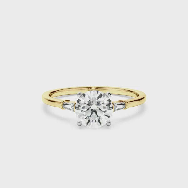 Round Brilliant Cut Diamond Engagement Ring With Baguette Sides