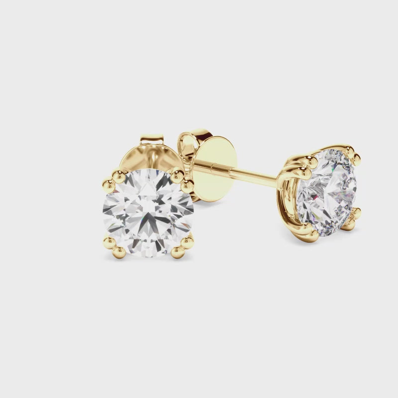 These round brilliant cut diamond stud earrings, made with your choice of diamond centre stone, feature a distinct 8-claw setting. Exuding fluidity in its line work, and boasting an elegant silhouette, as with all the pieces in our Bespoke Collection, this piece is made especially for you. Pictured here with a 1.00ct Round Brilliant Cut Diamond for each ear, the final price is determined following your centre stone selection.